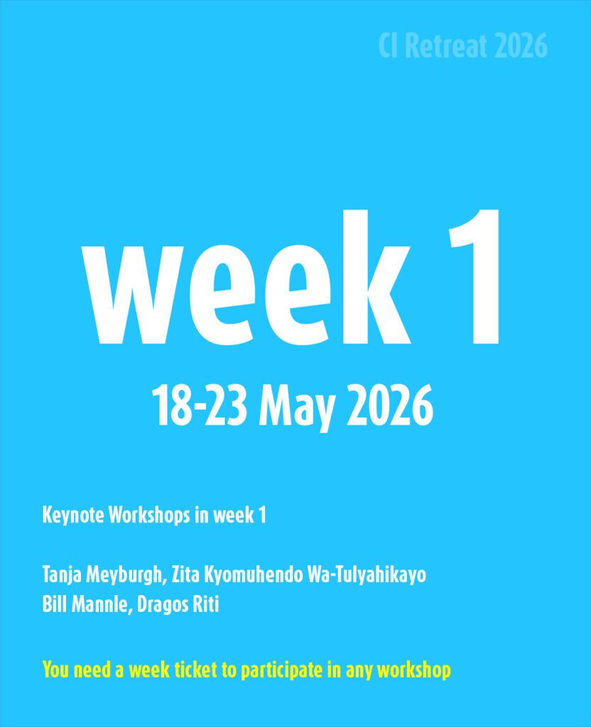 The Keynote Program of week 1 starts with the keynote workshop by Tanja Meyburgh on Tuesday 19 May 11 am-7 pm.